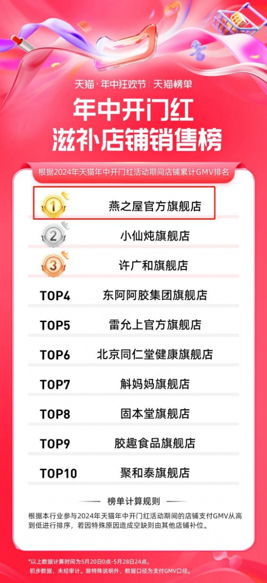 隨著618大幕拉開,第一波戰(zhàn)報(bào)火熱出爐。據(jù)阿里健康發(fā)布的2024年天貓年中開門紅健康行業(yè)成績單顯示,燕之屋官方旗艦店榮登滋補(bǔ)店鋪銷售榜第一、健康行業(yè)店鋪銷售榜第二,展現(xiàn)了燕之屋在品牌年輕化戰(zhàn)略中的深度思考和實(shí)踐能力。