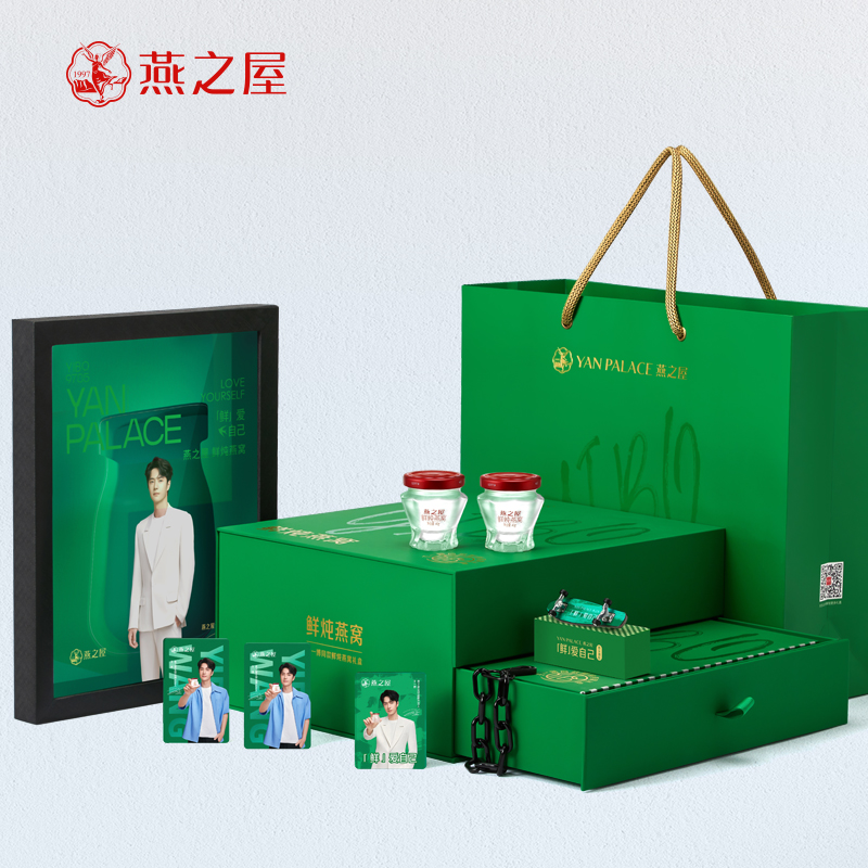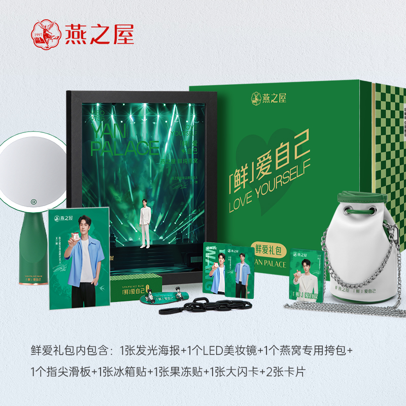 此外,王一博同款燕之屋鮮愛禮盒以青春張揚(yáng)的綠色為主色調(diào),充滿鮮活氣息;禮盒還附贈“YIBO”“鮮”愛周邊禮包,包括發(fā)光海報(bào)、LED美妝鏡、燕窩專用挎包、指尖滑板、冰箱貼、果凍貼、大閃卡、卡片,不同規(guī)格享不同禮遇。驚喜與品質(zhì)兼具,王一博同款燕之屋鮮愛禮盒一經(jīng)上線,便掀起搶購熱潮,贏得了廣大年輕消費(fèi)者的喜愛。