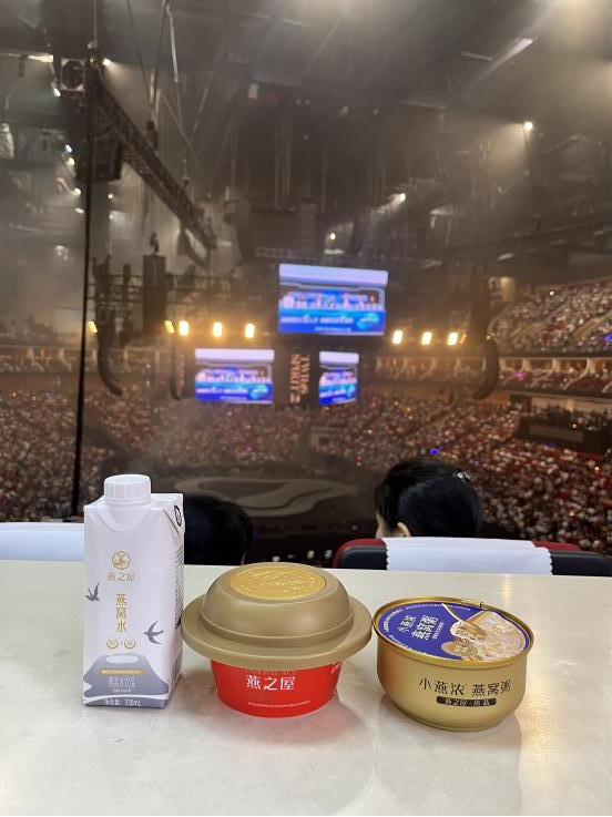 燕之屋專屬貴賓包廂位于場(chǎng)館包廂層觀演區(qū),以獨(dú)立豪華私享空間、劇場(chǎng)型座椅、餐飲服務(wù)等高級(jí)配置,為客戶打造舒適、自由、高品質(zhì)的觀演新體驗(yàn)。包廂客戶不僅可以享受專屬便捷入場(chǎng)通道、視野廣闊的沉浸式觀演,還可享用燕之屋小燕濃燕窩粥、燕之屋燕窩肽天然蘇打水,升級(jí)美好視聽(tīng)盛宴。燕之屋借助持續(xù)火爆的演出市場(chǎng),將品牌傳播與演唱會(huì)創(chuàng)新結(jié)合,通過(guò)邀請(qǐng)觀看演唱會(huì)的方式答謝忠實(shí)客戶,深受客戶喜愛(ài)。