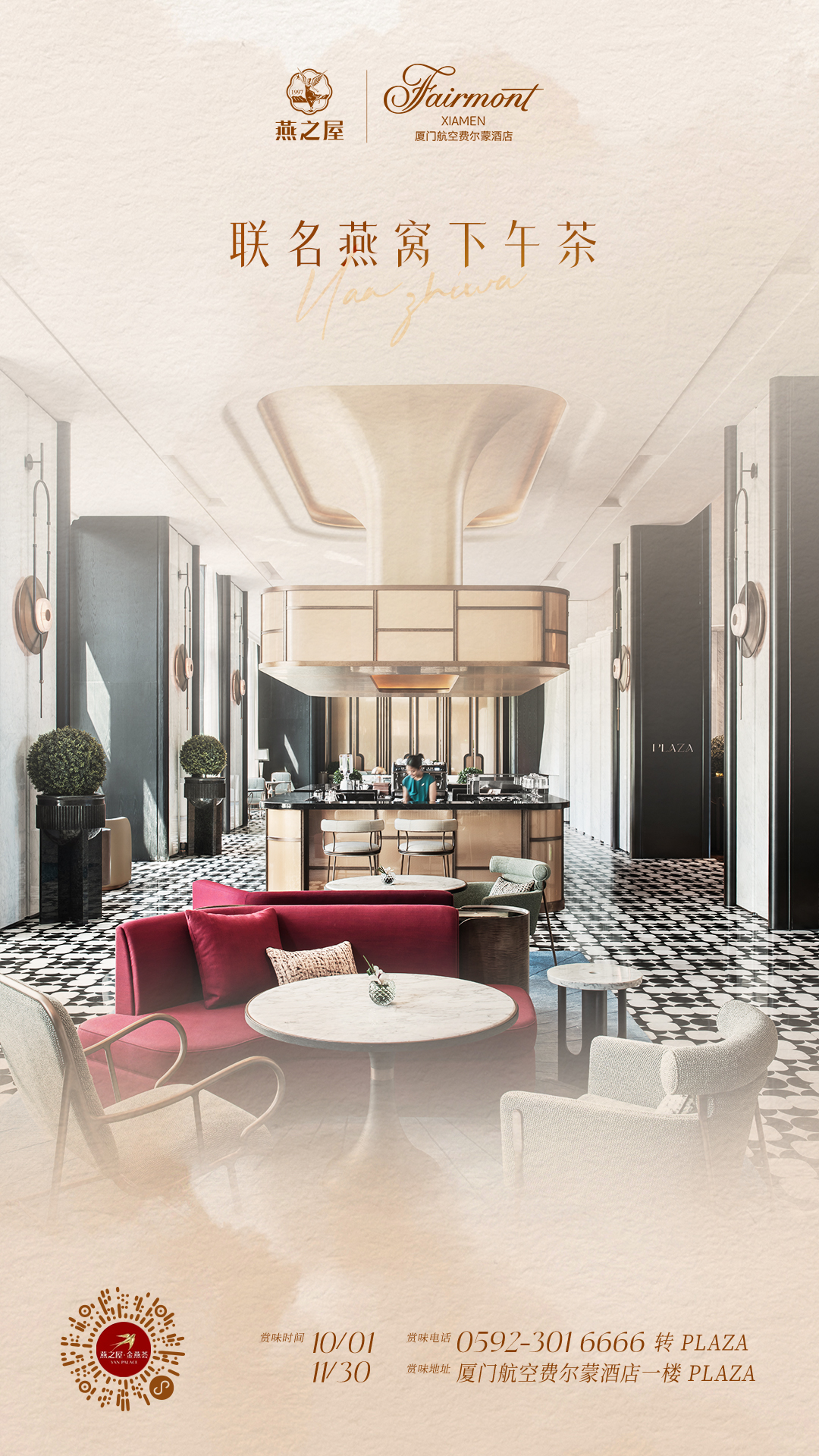 燕之屋聯(lián)袂廈門航空費爾蒙酒店聯(lián)名下午茶上線,于PLAZA臻啟味蕾新程